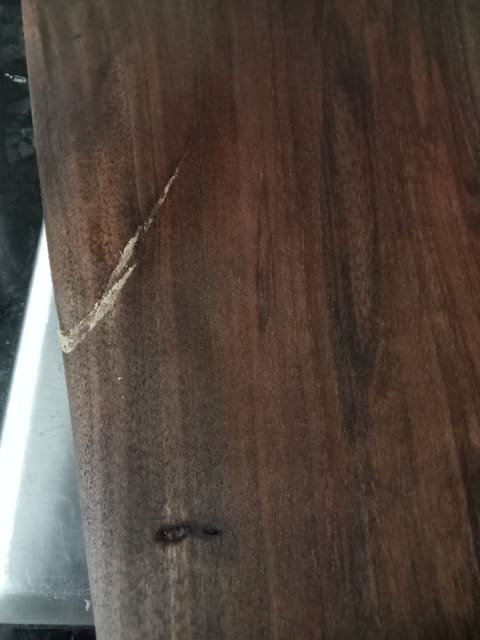 左端の白いところの傷にパテが塗ってあるのがわかります。